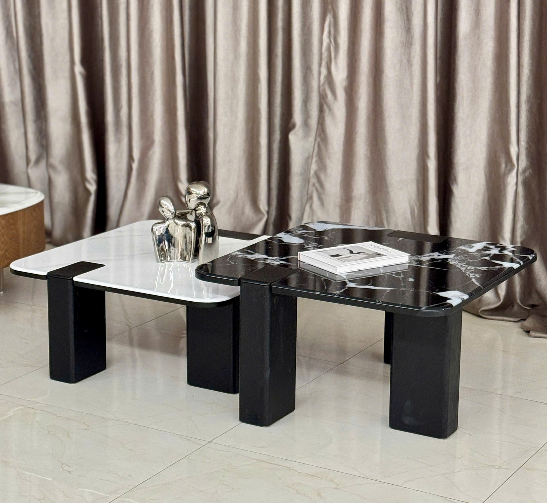 Bộ Bàn Trà Đôi Hình Vuông Mặt Đá Marble Hiện Đại