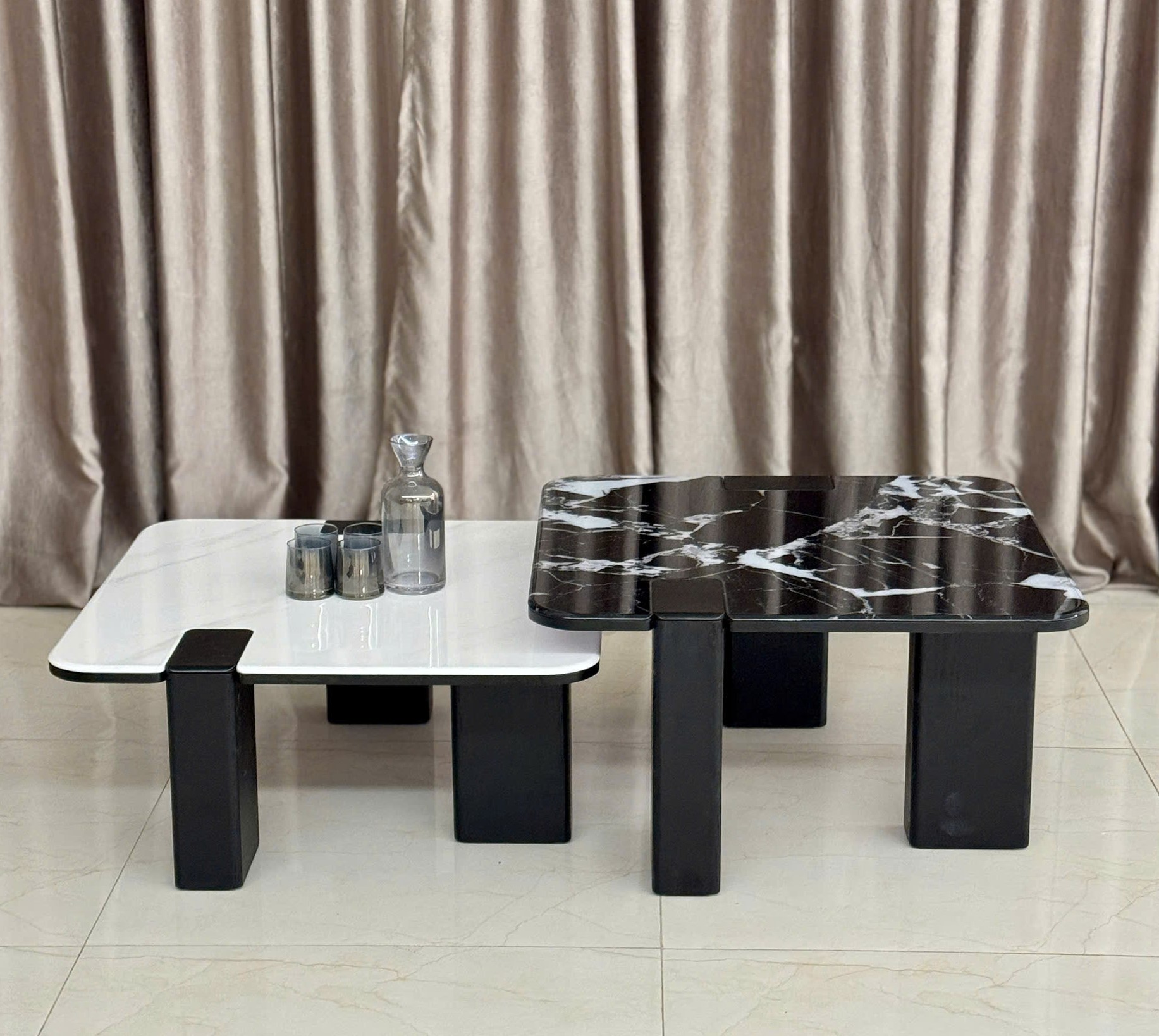 BỘ BÀN TRÀ ĐÔI HÌNH VUÔNG MẶT ĐÁ HIỆN ĐẠI