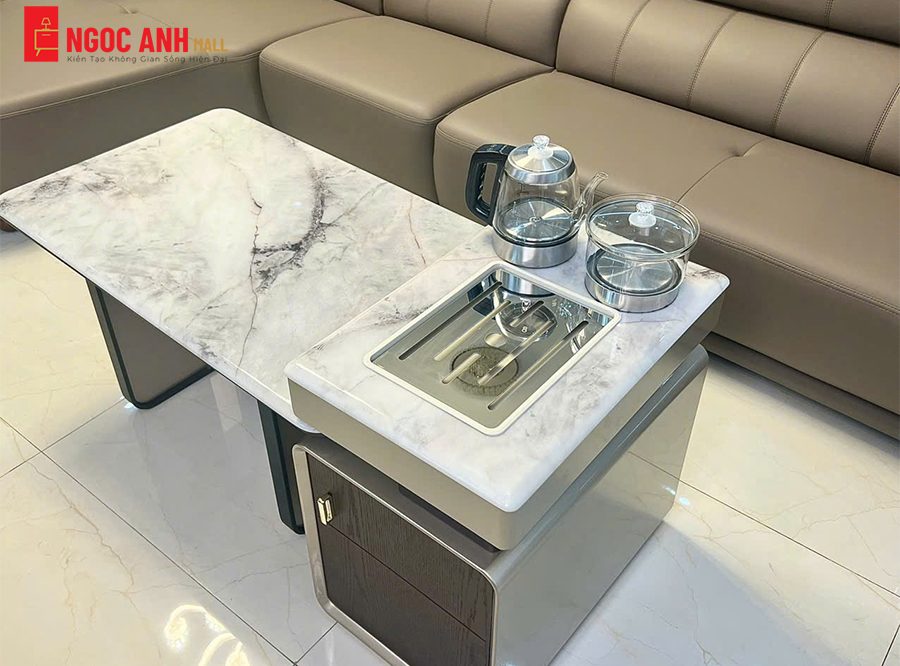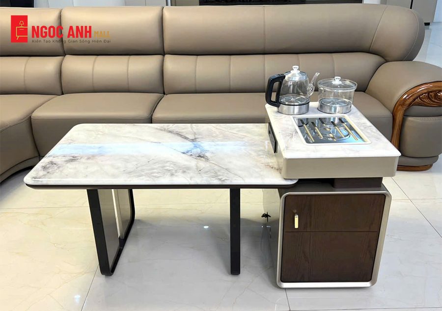 Mẫu bàn trà này là sự kết hợp hoàn hảo giữa vẻ đẹp sang trọng và công năng tiện ích, được thiết kế dành riêng cho những phòng khách hiện đại, đặc biệt là các gia đình yêu thích văn hóa trà đạo. Sản phẩm không chỉ là một món đồ nội thất, mà còn là một điểm nhấn tinh tế, thể hiện gu thẩm mỹ và phong cách sống đẳng cấp của gia chủ.