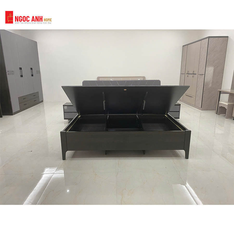 Khung Giường Chắc Chắn: Thiết kế khung giường thấp, vuông vắn, vững chãi, đảm bảo an toàn và phù hợp với phong cách hiện đại.