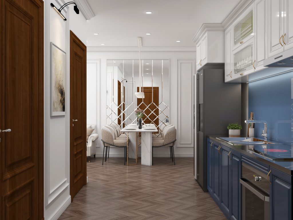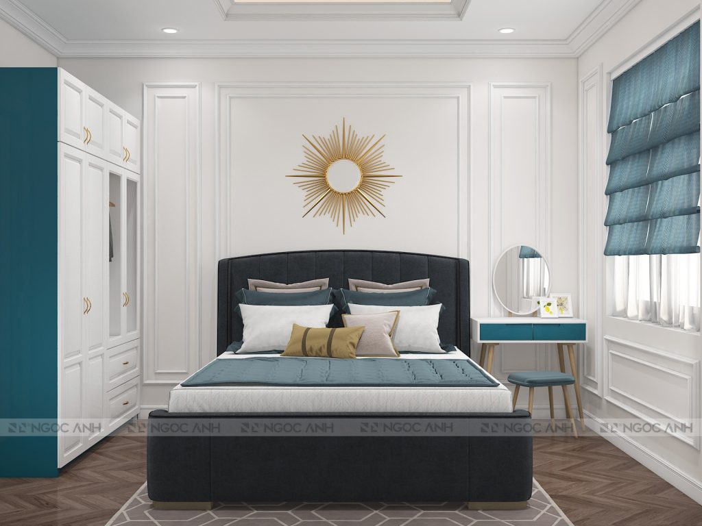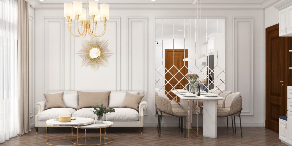 • Phong cách Tân Cổ điển (Neo-Classical): Tạo sự sang trọng, tinh tế bằng các chi tiết phào chỉ nhẹ nhàng, các tấm ốp tường và nội thất nhấn nhá màu sắc quý phái kết hợp với tông trắng chủ đạo.