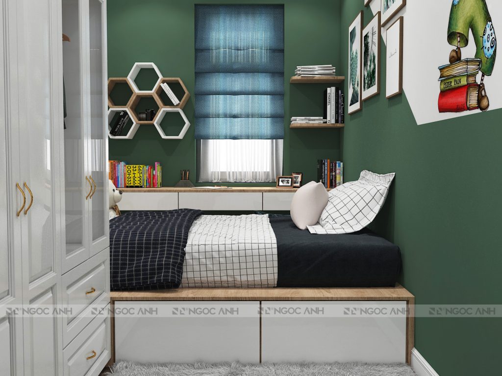 • Thiết kế Âm tường và Đa năng: Sử dụng tủ kệ tích hợp, kệ TV âm tường, hoặc giường có ngăn kéo để tăng khả năng lưu trữ mà vẫn giữ được sự gọn gàng, hiện đại.
